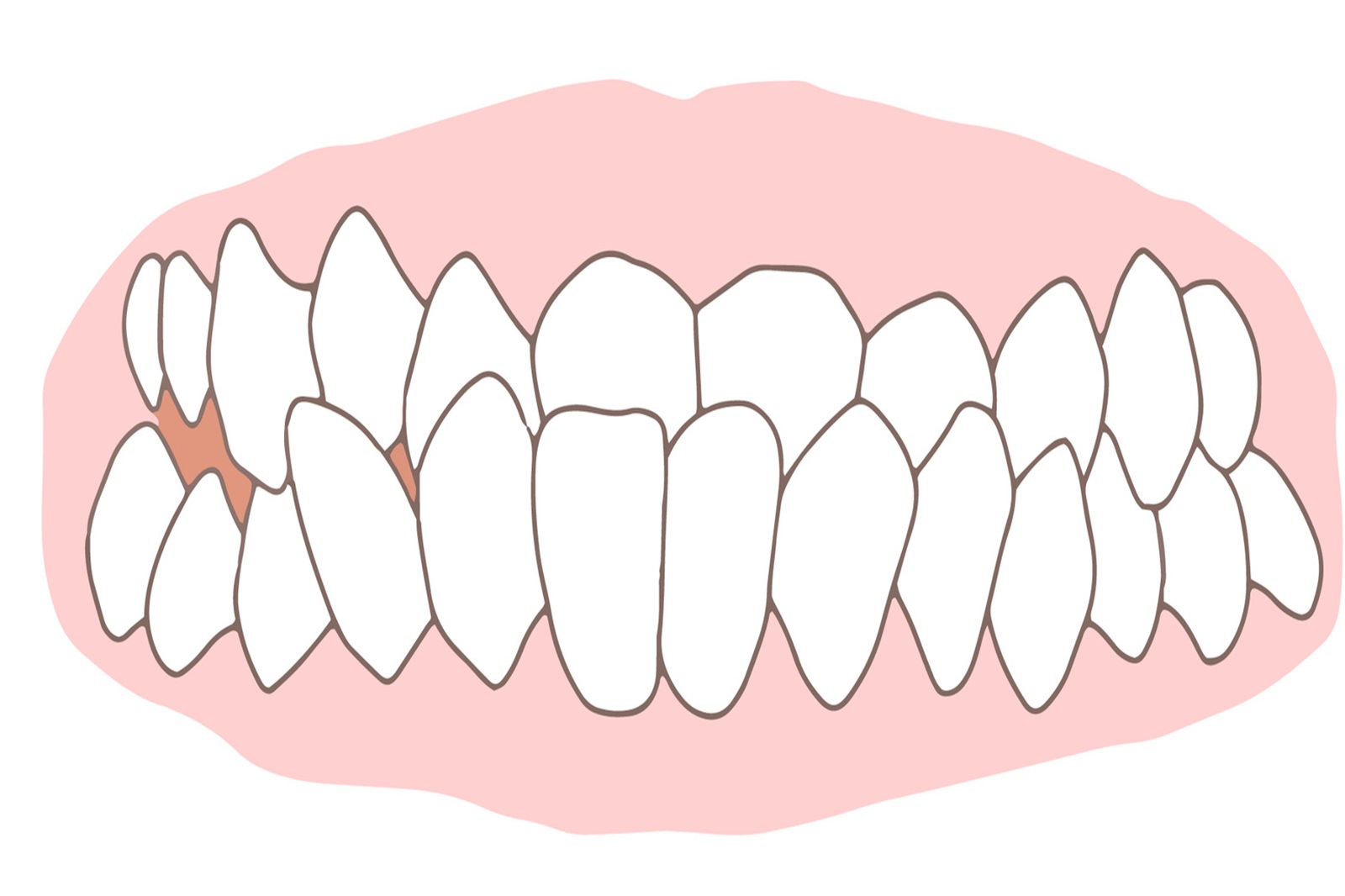 歯が顎のスペースに収まりきらずデコボコしていると、歯の清掃が難しくなり、虫歯や歯周病のリスクが高まります。